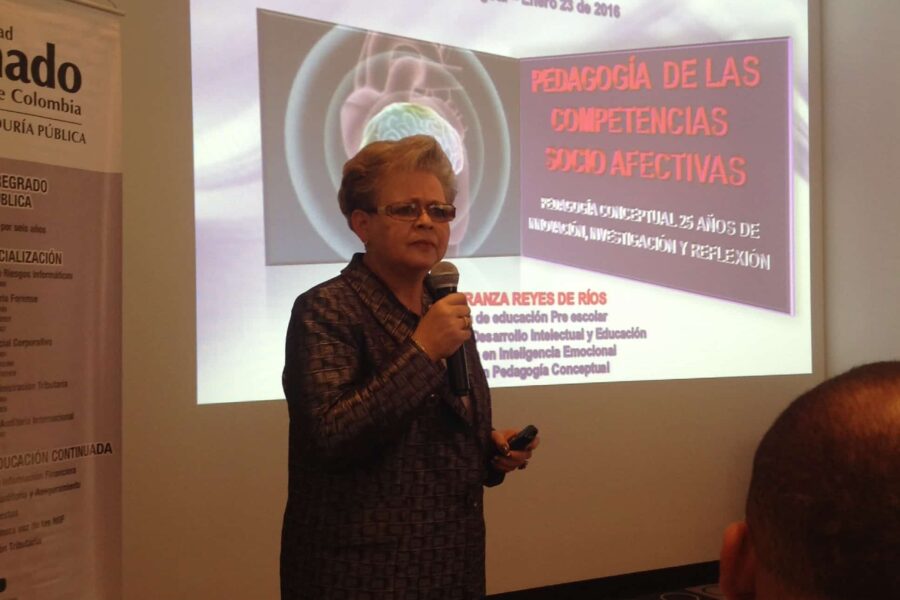 Como parte de la agenda de inducción y re inducción a los docentes, fue desarrollada la conferencia titulada «Pedagogía de las Competencias Socio Afectivas», exposición magistral desarrollada por la doctora Esperanza Reyes de Ríos.